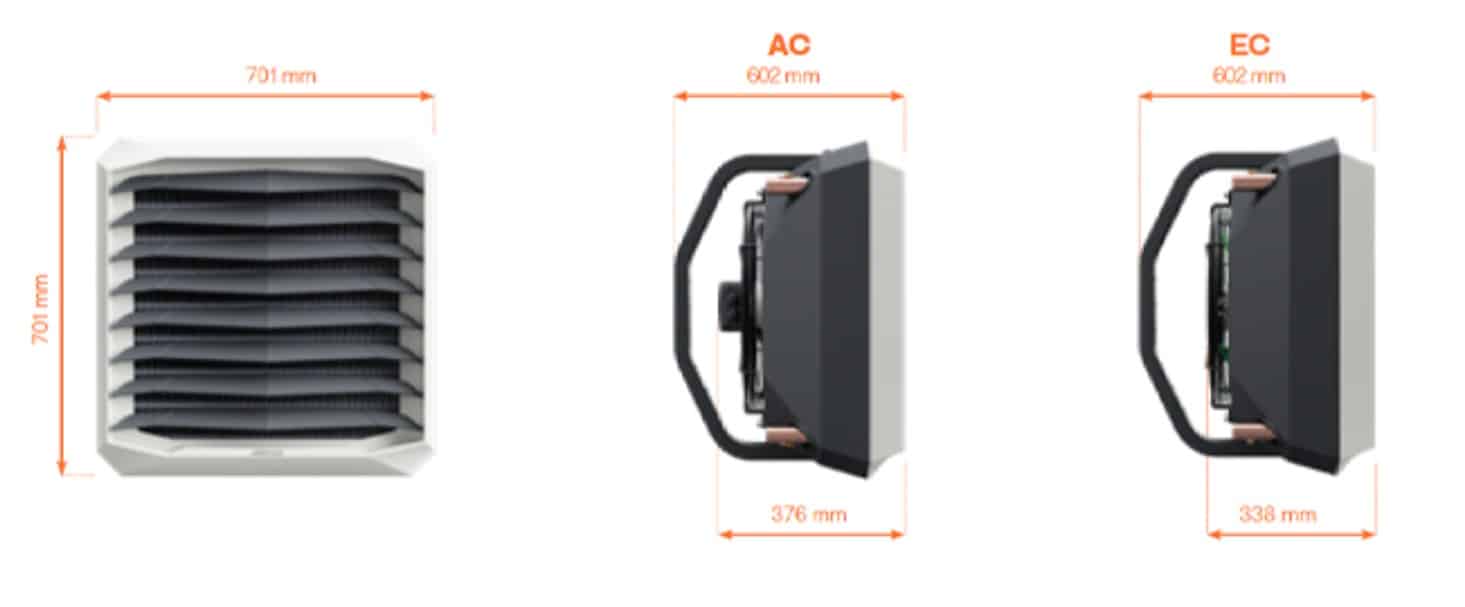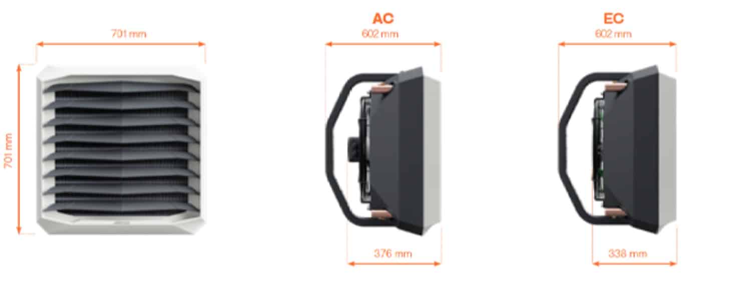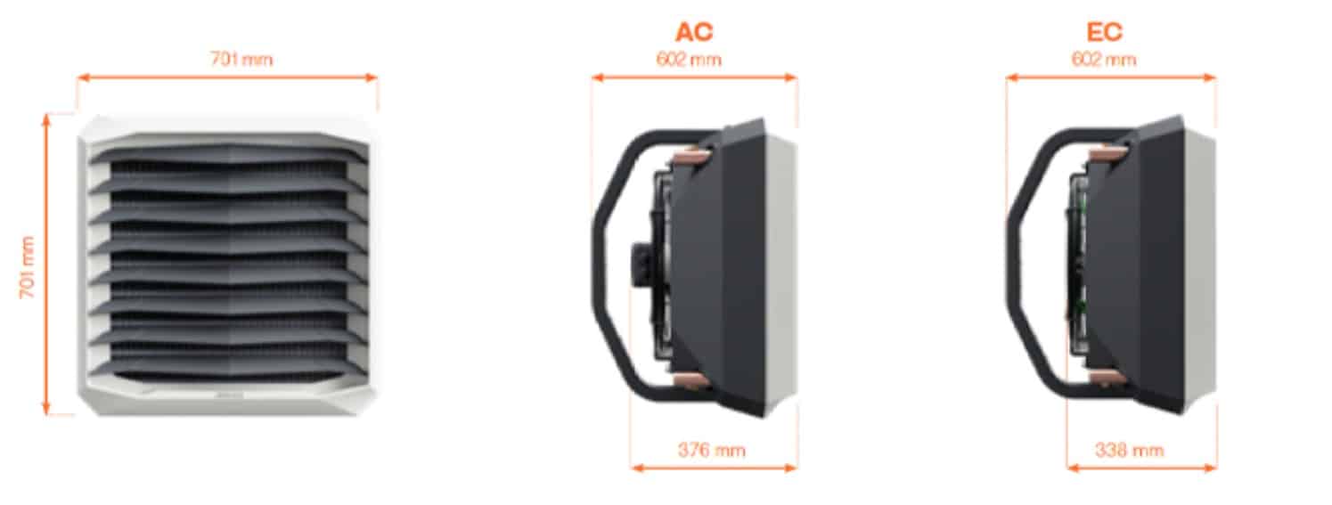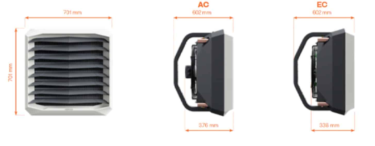 Wodna nagrzewnica wentylatorowa z silnikiem AC
